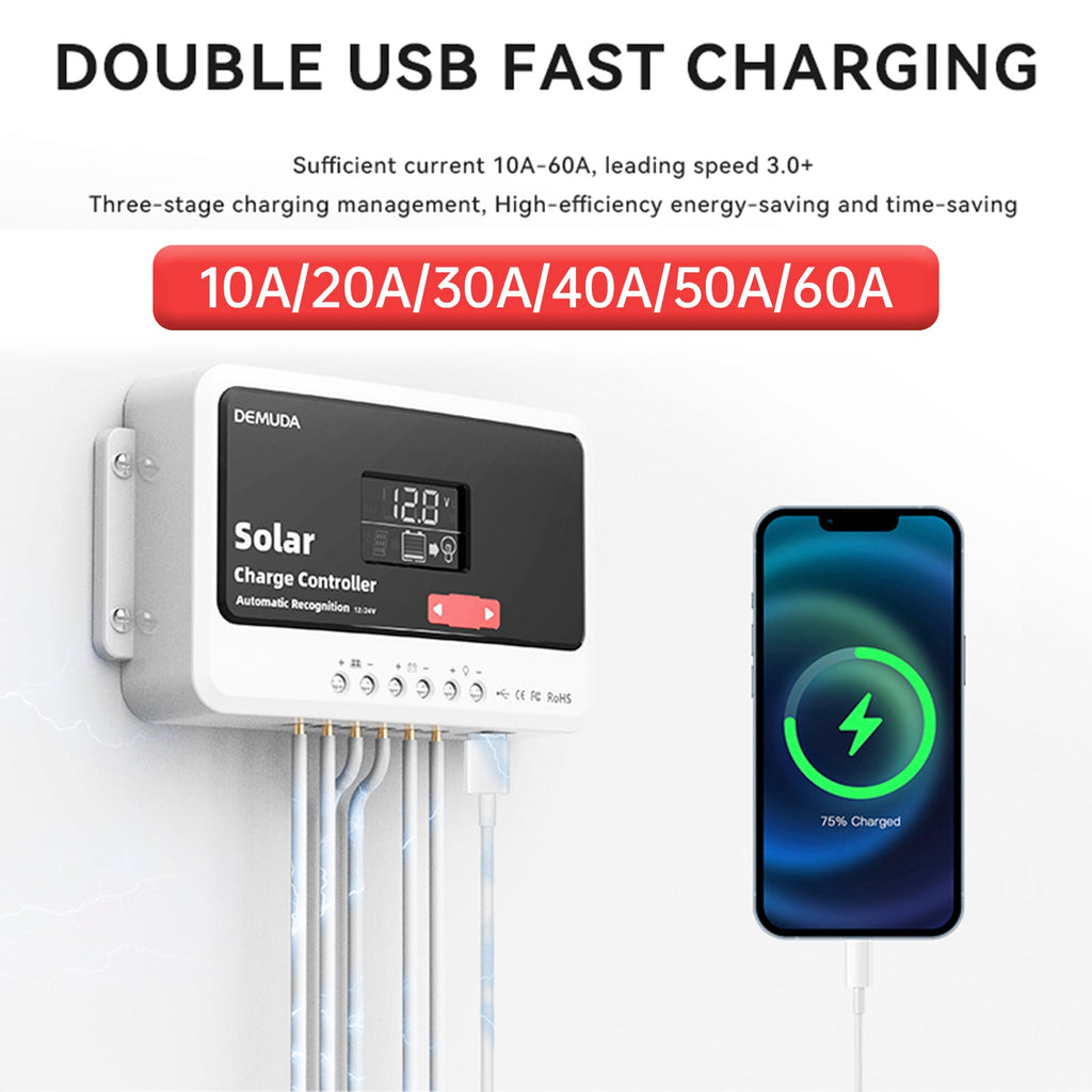 12V24V48V 10A/20A/30A/40A/50A/60A PWM-Solarregler Automatische Identifikation Solarregler passend für Blei-Säure-Lithium-Batterie Lithium-Eisenphosphat Universal-Photovoltaik-Ladegerät