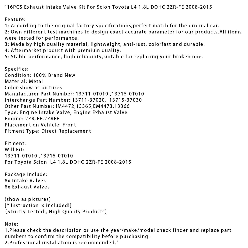 16PCS Exhaust Intake Valve Kit Fit For Scion Toyota L4 1.8L DOHC 2ZR-FE 2008-2015