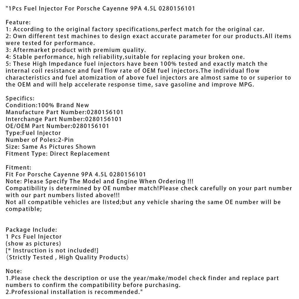 1. Bitte überprüfen Sie vor dem Kauf die Beschreibung oder verwenden Sie die Teilenummern-Prüfung (Jahr/Marke/Modell) und vergleichen Sie die Teilenummern, um die Kompatibilität zu bestätigen.