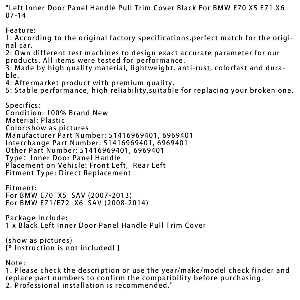 Levá vnitřní klika dveřního panelu Vytahovací kryt černý Pasuje na BMW E70 X5 E71 X6 07-14