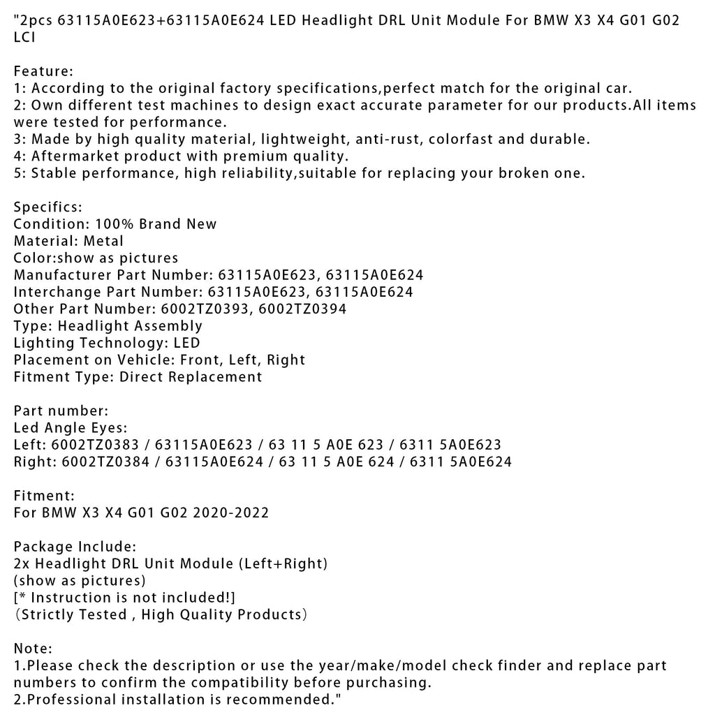 2 stücke 63115A0E623 + 63115A0E624 LED Scheinwerfer DRL Einheit Modul Fit Für BMW X3 X4 G01 G02 LCI