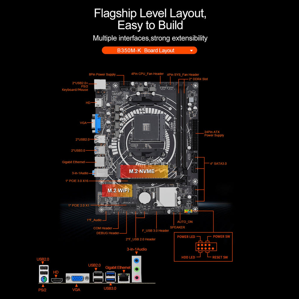 Základní deska počítače B350M-K, stolní počítač, patice AMD AM4, procesor podporuje WIFI, NVME, gigabitovou síťovou kartu