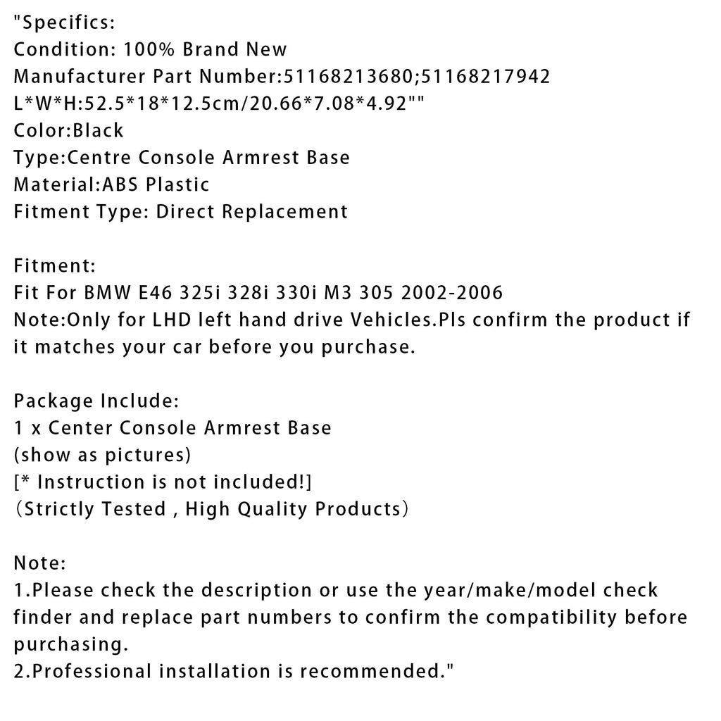 Black Centre Console Armrest Trim Base For BMW E46 325i 328i 02-06 51168213680