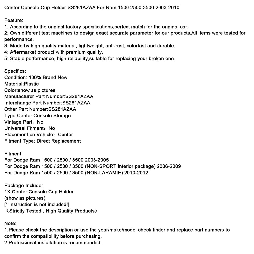 Getränkehalter mit kleinem Loch in der Mittelkonsole SS281AZAA für Ram 1500 2500 3500 2003-2010