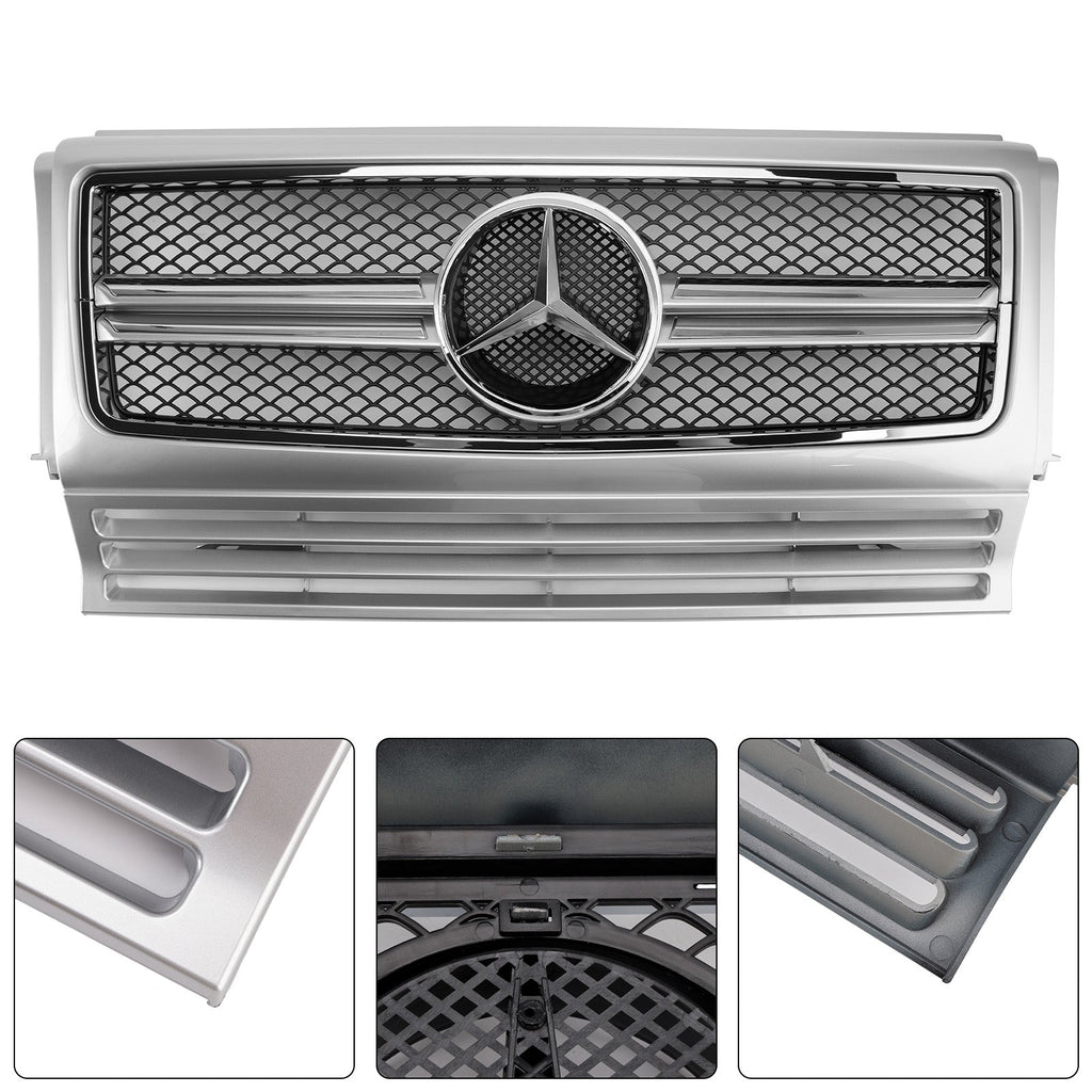 Chrome Black Front Bumper Grille Grill Fit for 1990-2018 Mercedes Benz W463