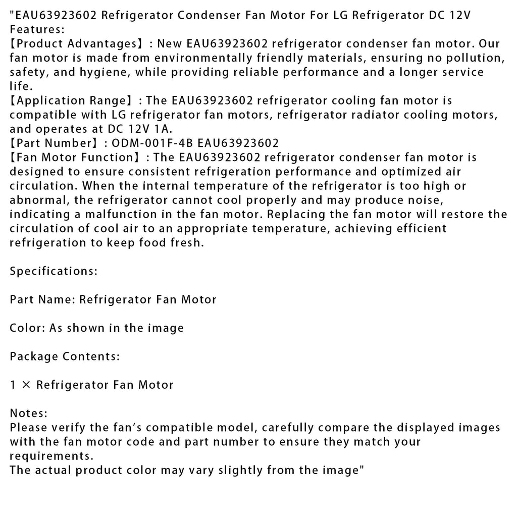 【Product Advantages】: New EAU63923602 refrigerator condenser fan motor. Our fan motor is made from environmentally friendly materials, ensuring no pollution, safety, and hygiene, while providing reliable performance and a longer service life.