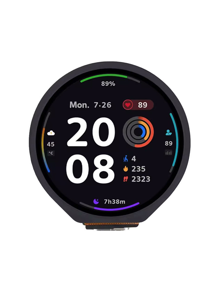 5. Integrovaný 1,28palcový kapacitní dotykový LCD displej, rozlišení 240 x 240, 65 tisíc barev