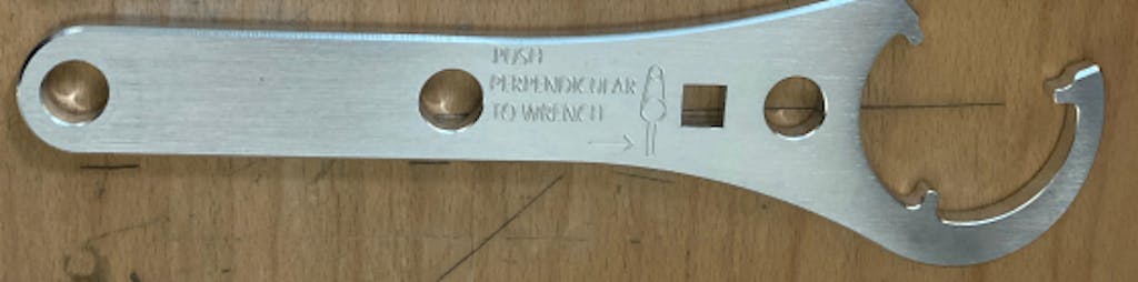 Dále máme klíč na hlavu negativního vzduchového těsnění. Je dlouhý 24,1 cm a má zkosené rohy, aby pohodlně padl do ruky. Má 3/8" čtvercový pohon, takže jej můžete utáhnout podle specifikace. Jednoduše vyrovnejte momentový klíč s ryskou (kolmo ke klíči) a můžete začít. To je stejné jako u Fox číslo dílu 398-00-419. Tento nástroj je vhodný pro plovákové tlumiče 2016-2021 x2 a dhx2.