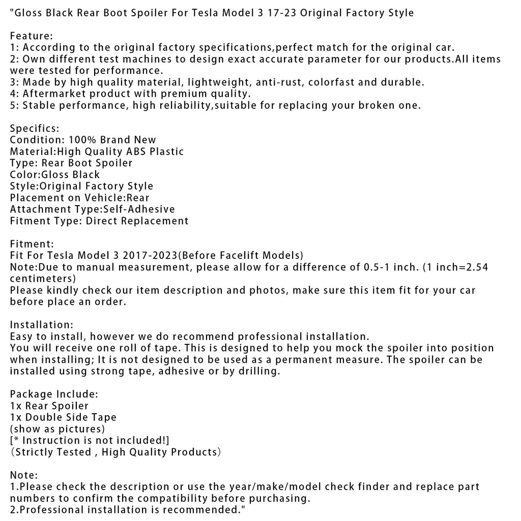 Schwarz glänzender Heckspoiler für Tesla Model 3 17-23, Original-Werksstil