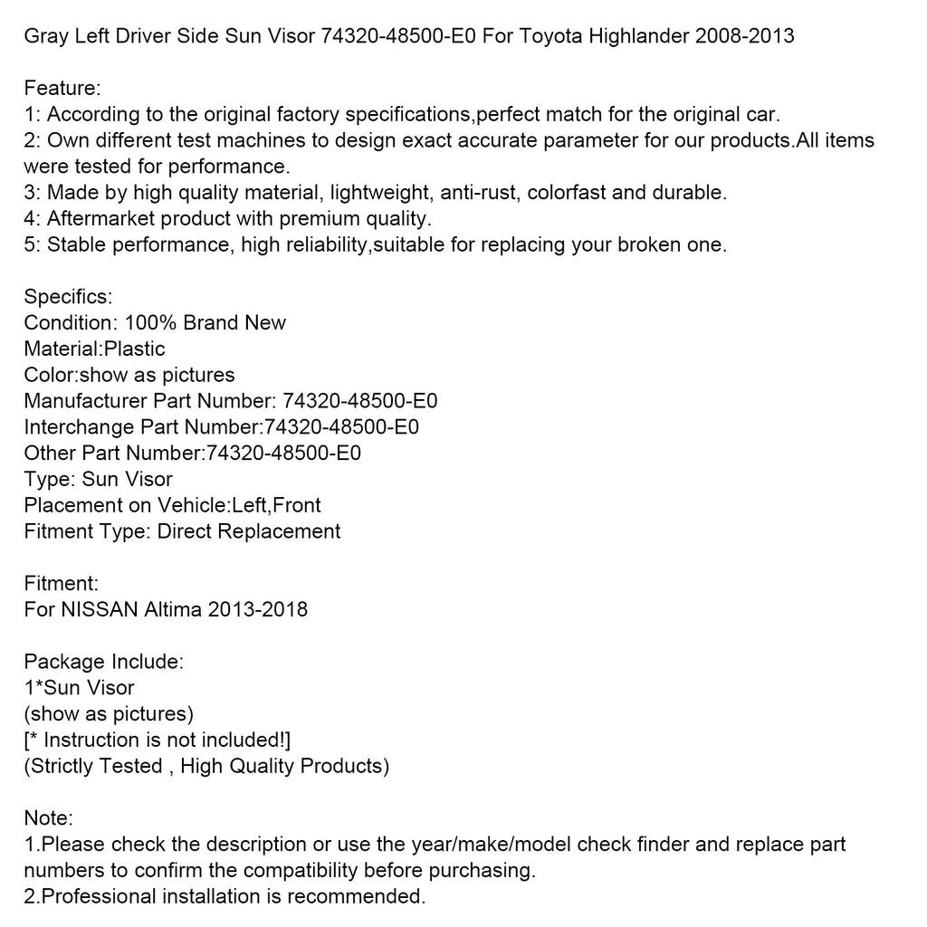 Gray Left Driver Side Sun Visor Fit For Toyota Highlander 2008-2013 74320-48500-E0