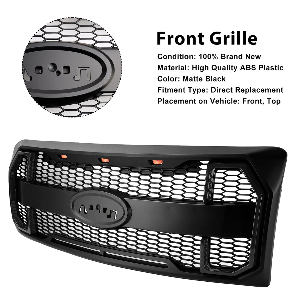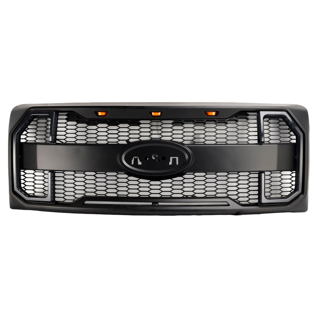 Matně černá mřížka chladiče ve stylu Raptoru pro přední nárazník. Pasuje na Ford F150 2009-2014 s LED diodami