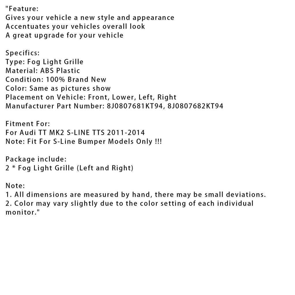 Mřížka mlhových světel s voštinovým vzorem pro přední nárazník Audi TT MK2 S-Line TTS 2011-14