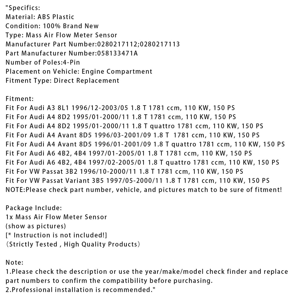 Mass Air Flow Meter Sensor For Audi A3 A4 VW Passat 1.8T 0280217112