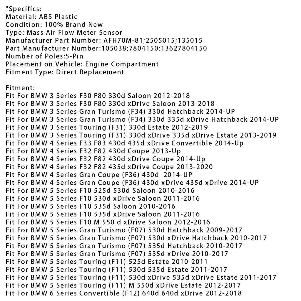 Mass Air Flow Meter Sensor For BMW 330d 525d 530d X3 X4 13627804150