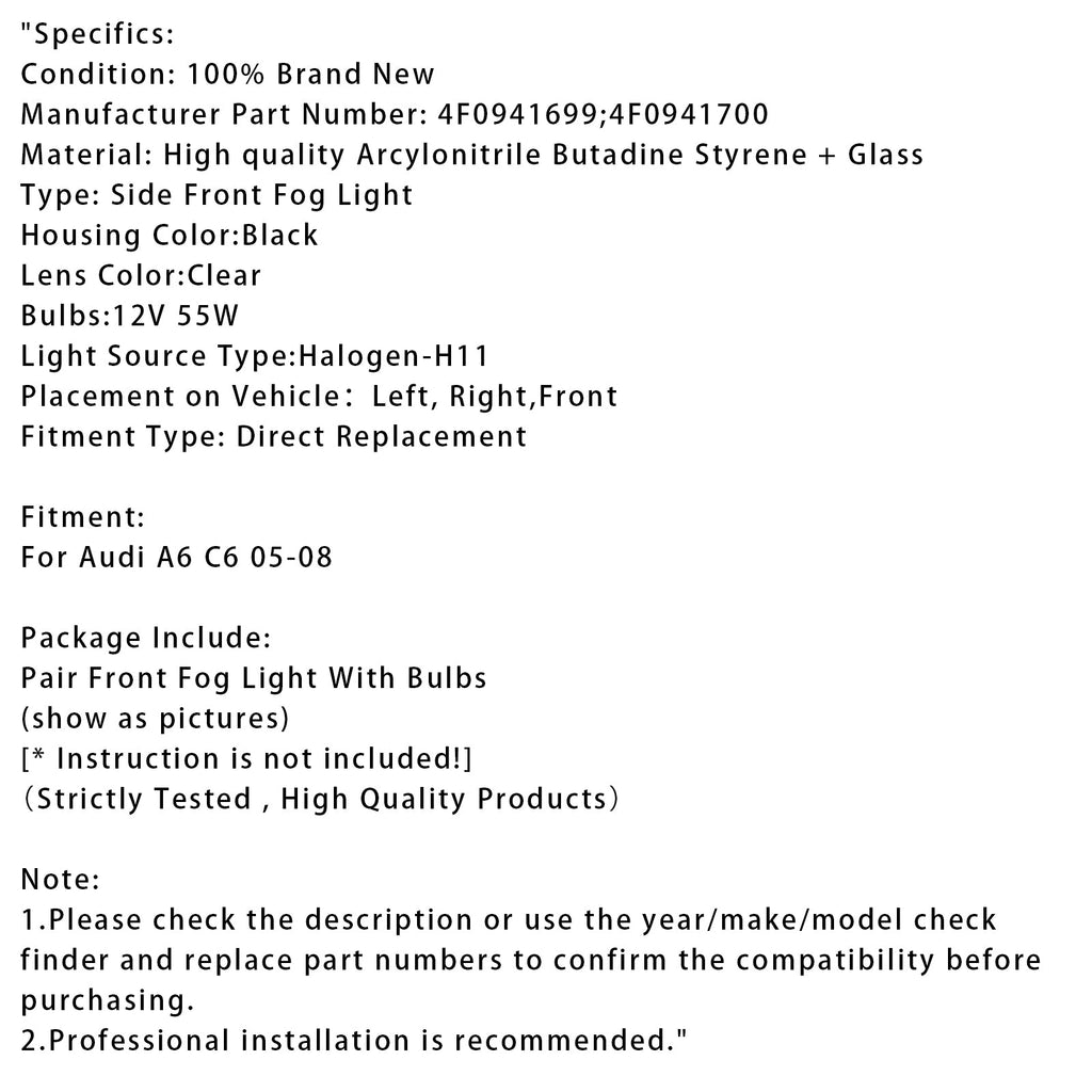 Dvojice předních mlhových světel do nárazníku pro Audi A6 C6 2005 2006 2007 2008