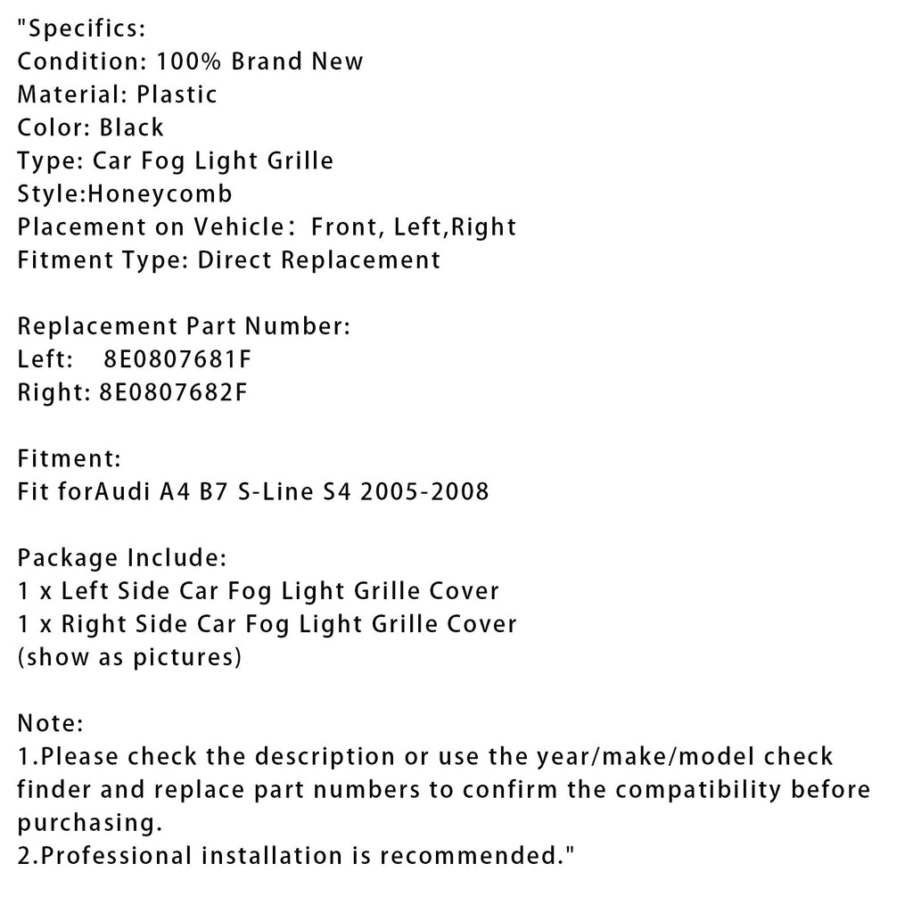 Kryt mřížky do mlhy s voštinovým vzorem pro Audi A4 B7 S-Line S4 2005-2008, černý