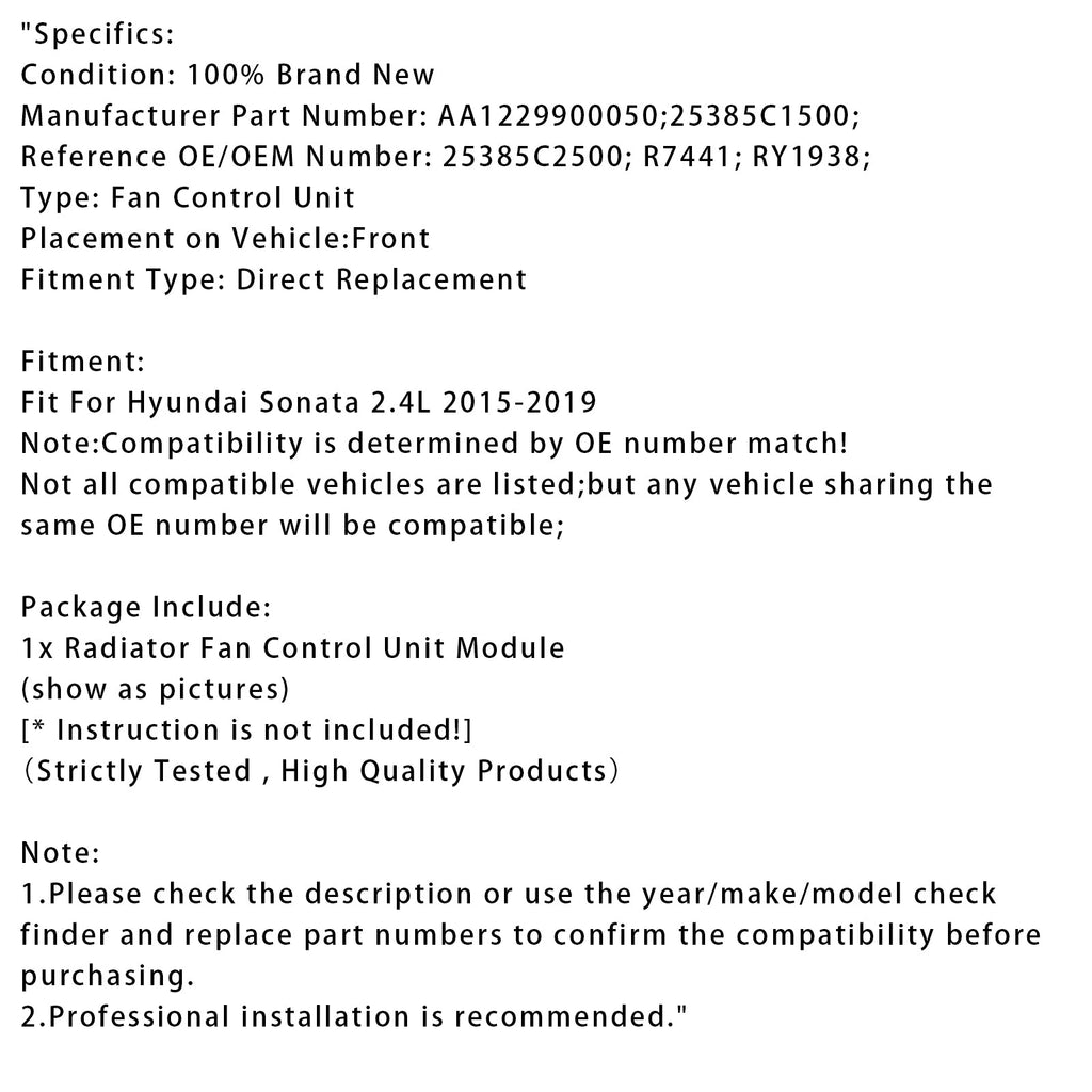 Kühlerlüfter-Steuermodul für Hyundai Sonata 2.4L 2015–2019 AA1229900050