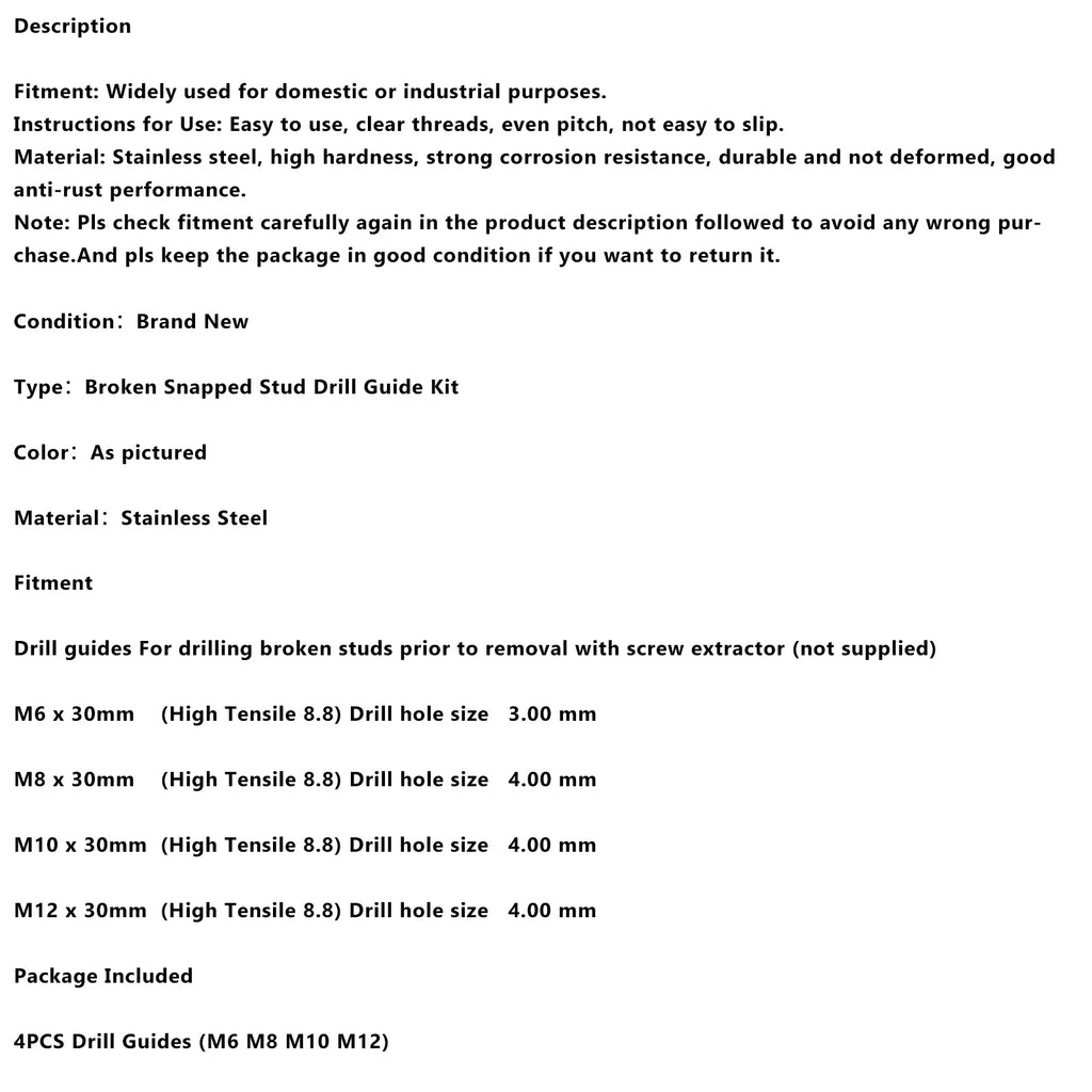 Drill guides For drilling broken studs prior to removal with screw extractor (not supplied)
