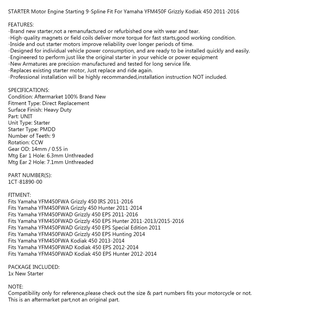 STARTER Motor Startování motoru 9-spline Fit pro Yamaha 449cc 450 WR450F 2007-15 5TJ-81890-30-00