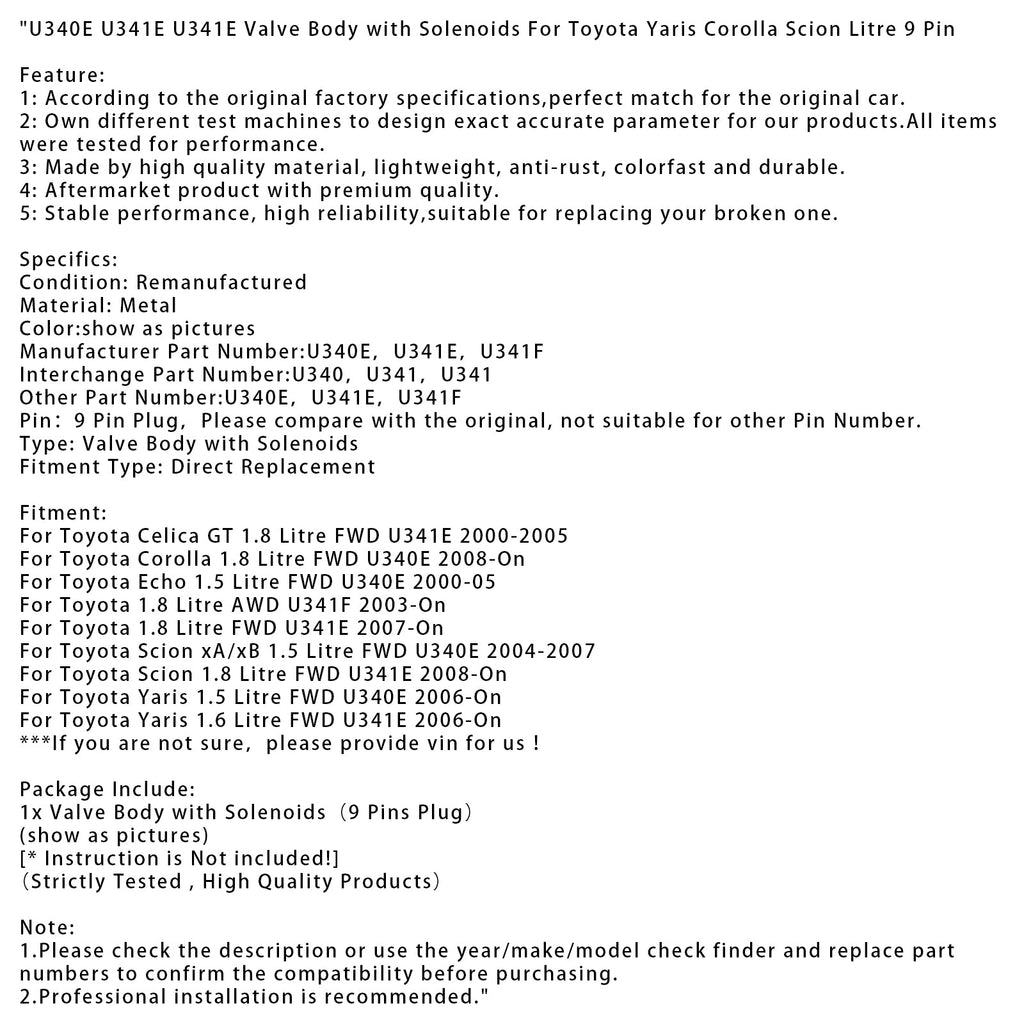 U340E U341E U341E Ventilkörper mit Magnetspulen für Toyota Yaris Corolla Scion Liter 9 Pin