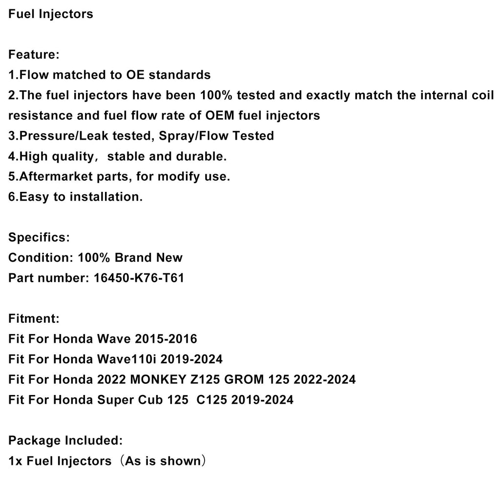 Kraftstoffeinspritzdüsen passend für Honda Wave 110 Monkey Grom 125 Super Cub 16450-K76-T61