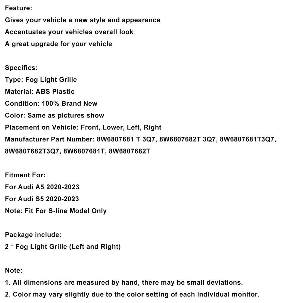 2PCS Front Stoßstange Nebel Licht Abdeckung Grille Fit für 2020-2023 Audi A5 S-linie S5 8W6807682T3Q7
