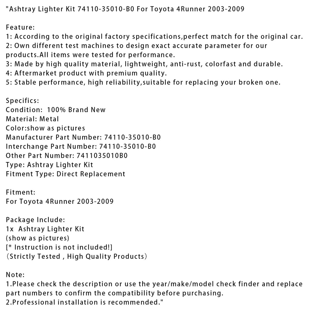 Aschenbecheranzünder-Kit 74110-35010-B0 Für Toyota 4Runner 2003-2009