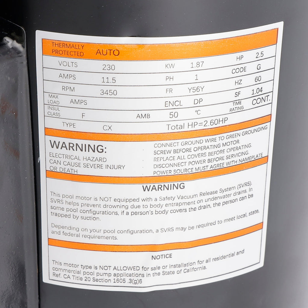 Til B2840 B840 2,5 HK 230 V poolpumpemotor 56Y ramme firkantet flange