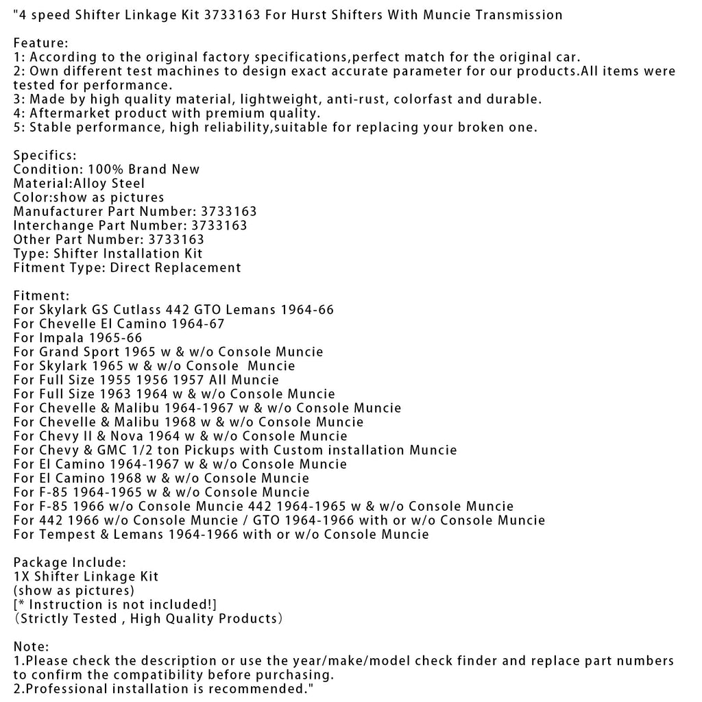 4-trins gearstangssæt 3733163 til Hurst gearstang med Muncie gearkasse