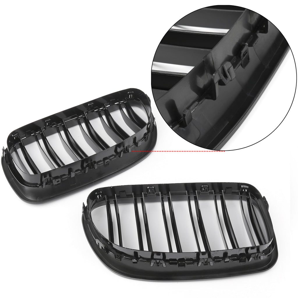 Dobbelt linje blank sort front hætte nyre grill grill til BMW F10 F18 10-16