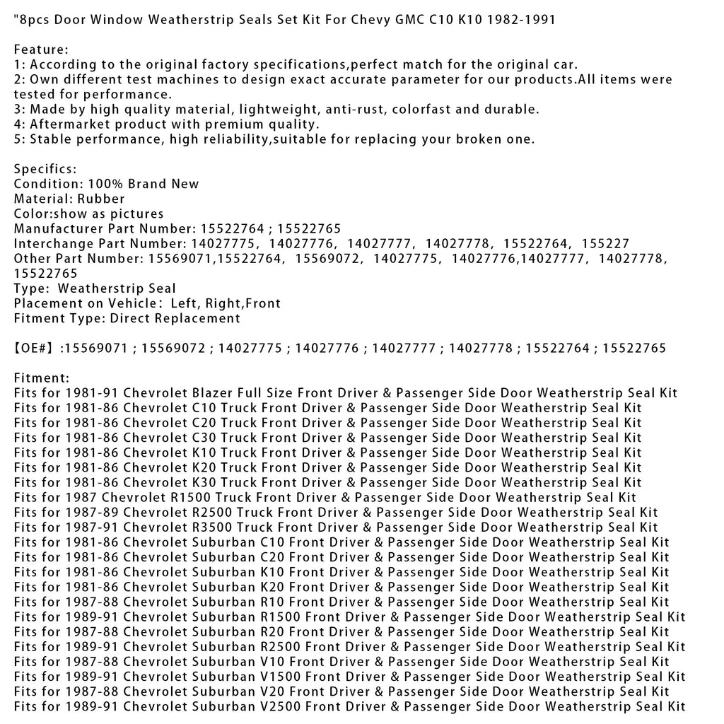 8 stk. tætningslister til dørrude til Chevy GMC C10 K10 1982-1991
