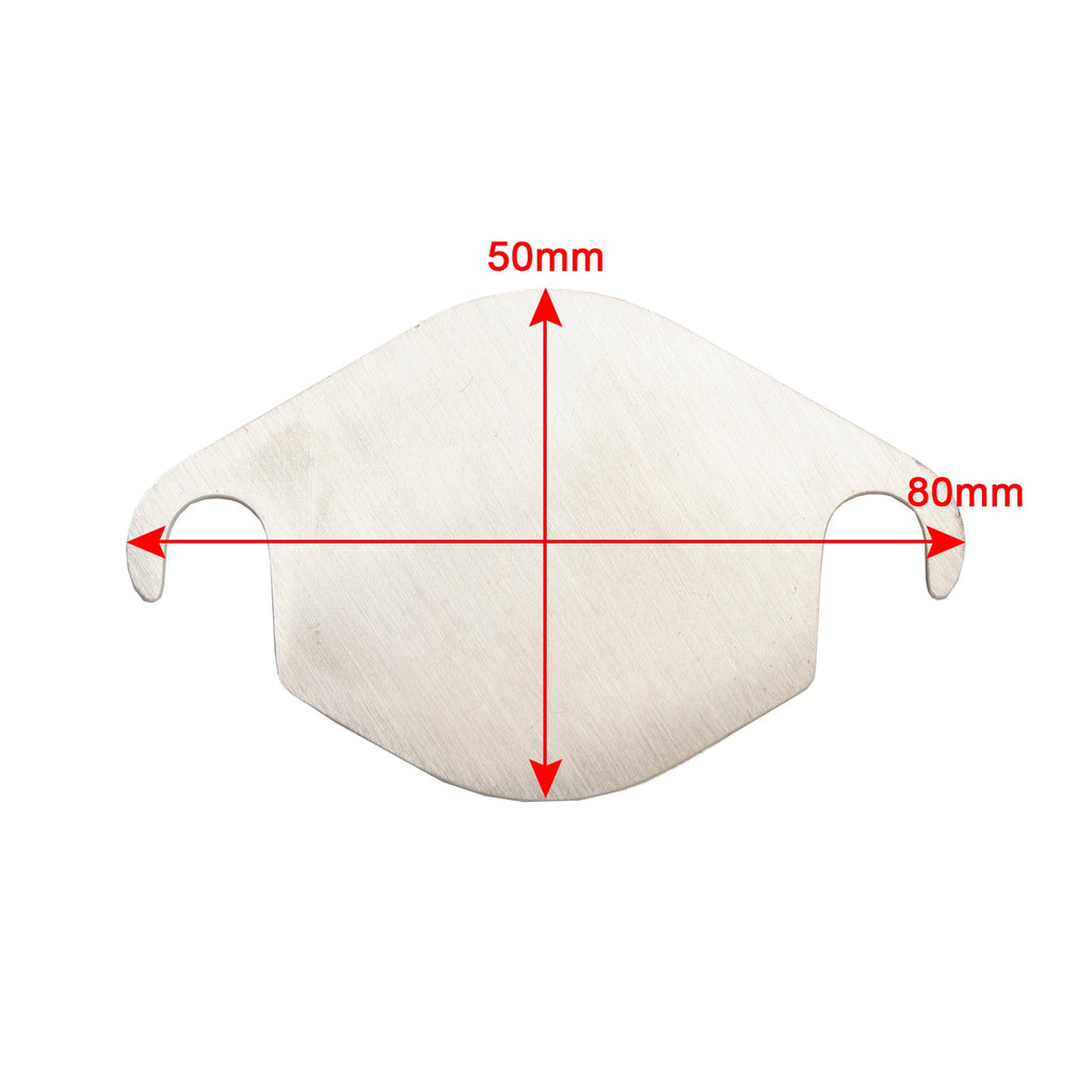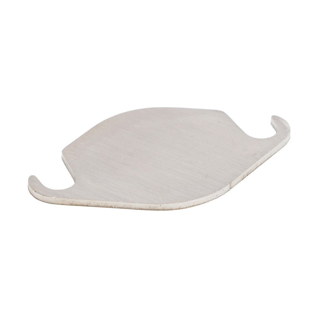 Denne plade er lavet af 1,5 mm tykt, laserskåret rustfrit stål. Den passer til Transit Euro5 2,2 l og 2,4 l TDCi (2011-2017). Ikke til Transit Euro6 fra 2017. Pladen er monteret mellem EGR-ventilen og kølerøret på udstødningsmanifolden (bagest til højre). Pladen er forsænket for at forenkle installationen. Skruerne løsnes blot, pladen skubbes ind mellem EGR-ventilen og den eksisterende pakning og strammes derefter igen.