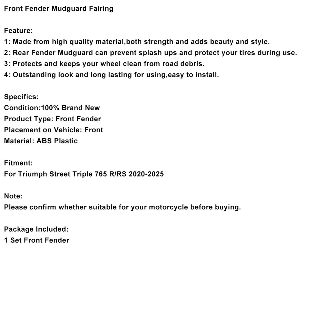 Vorderradkotflügelverkleidung passend für Street Triple 765 R RS 2020-2025, glänzend schwarz
