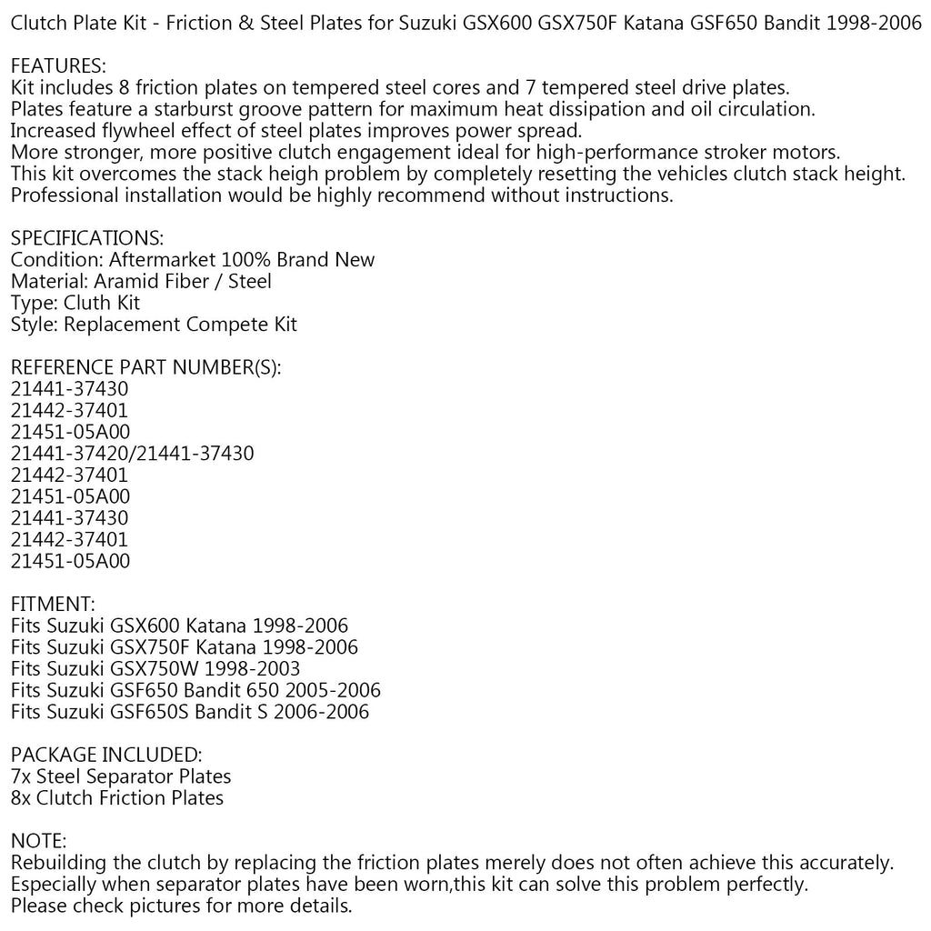 Koblingspladesæt - Friktions- og stålplader til Suzuki GSX600 GSX750F Katana GSF650 Bandit 1998-2006
