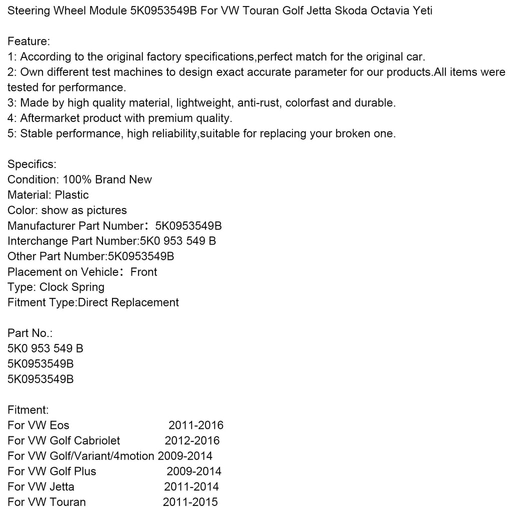Ratmodul 5K0953549B til VW Touran Golf Jetta Skoda Octavia Yeti