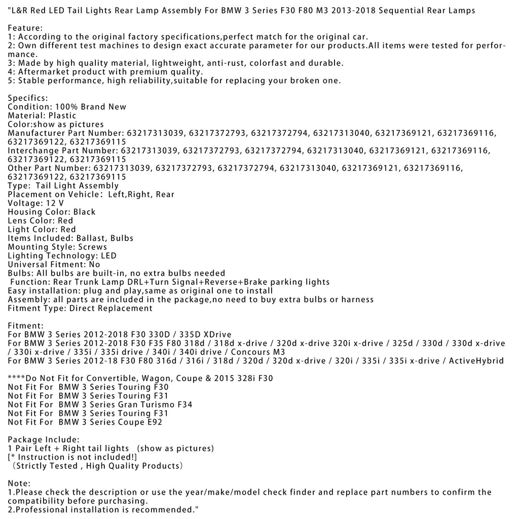 Røde LED-baglygter til venstre og højre, baglygtesæt til BMW 3-serie F30 F80 M3 2013-2018, sekventielle baglygter