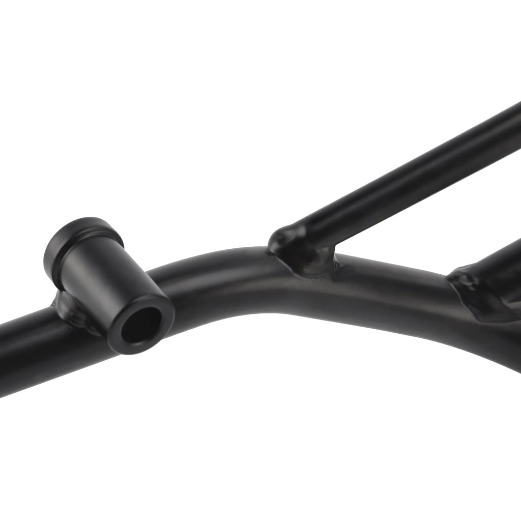 Unser robustes, querverstrebtes Gepäckträgersystem fungiert als zusätzlicher Hilfsrahmen, verstärkt das Heck des Motorrads und fungiert als hinterer Sturzbügel.