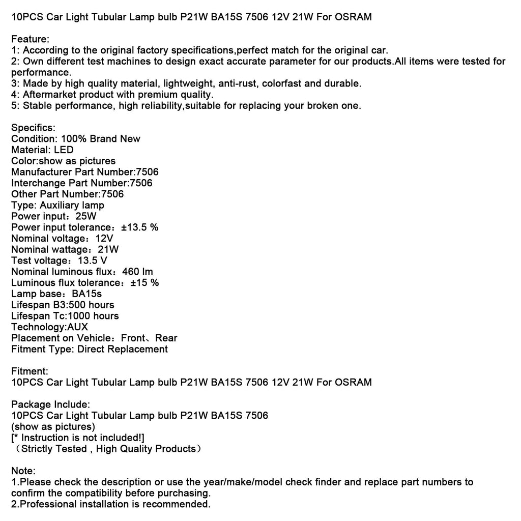 10 STÜCKE Auto Licht Rohr Lampe birne P21W BA15S 7506