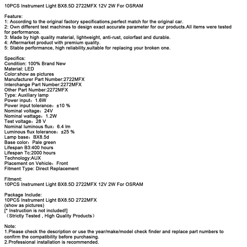 10PCS Instrument Licht BX 8,5 D 2722MFX 12V 2W Für OSRAM