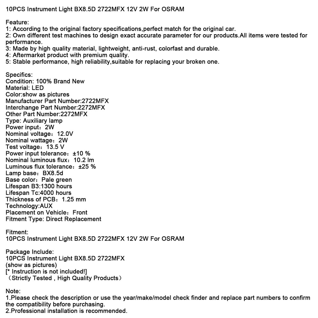 10PCS Instrument Licht BX 8,5 D 2722MFX 12V 2W Für OSRAM