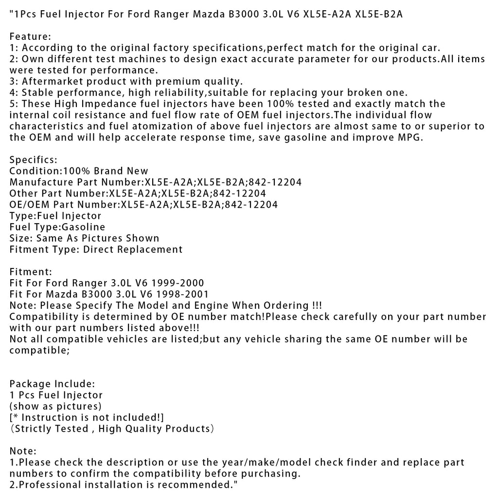 1 Stück Kraftstoffeinspritzdüse für Ford Ranger Mazda B3000 3.0L V6 XL5E-A2A XL5E-B2A