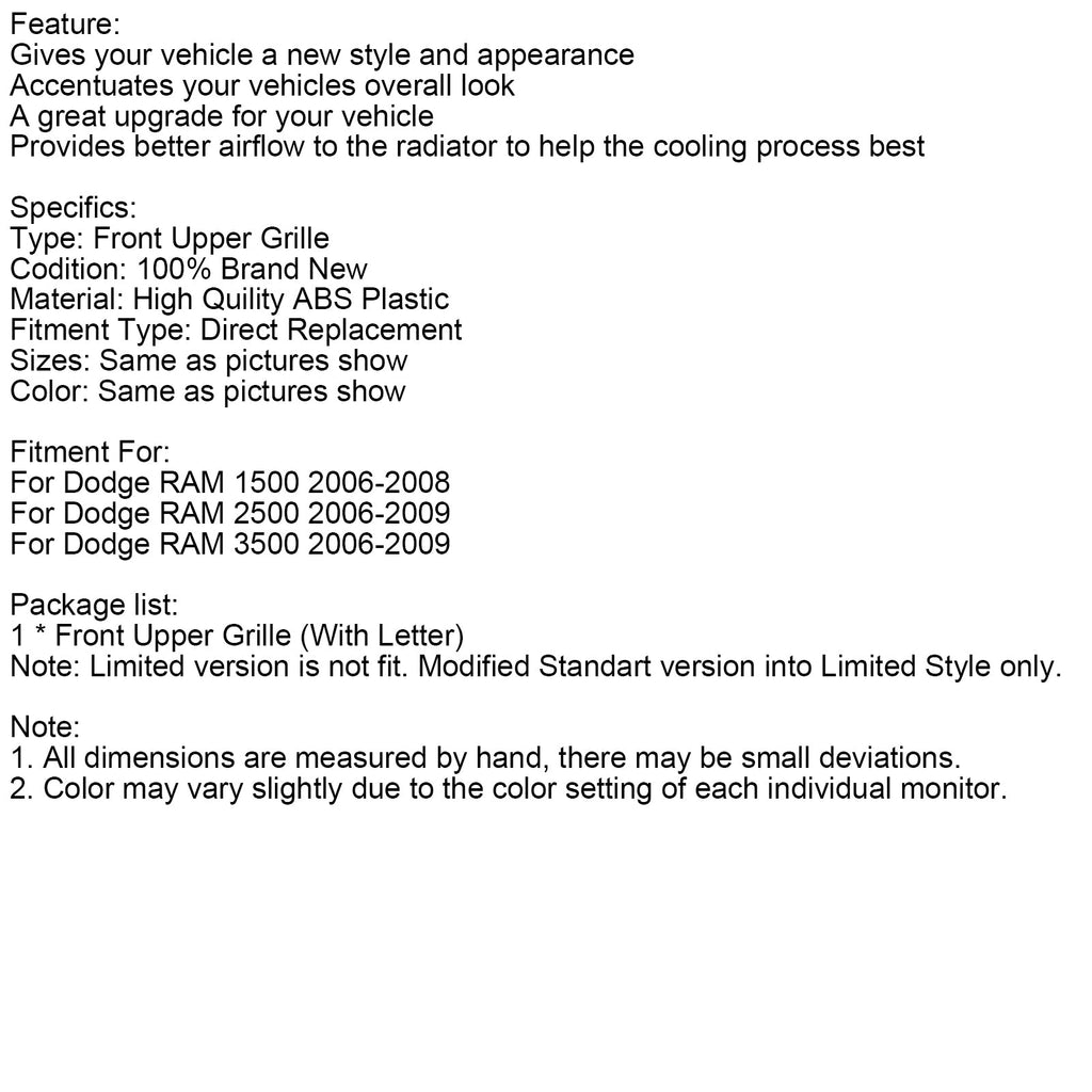 Frontstoßstangengrill im LTD-Stil, passend für Dodge RAM 1500 (2006–2008) und RAM 2500 (2006–2009)