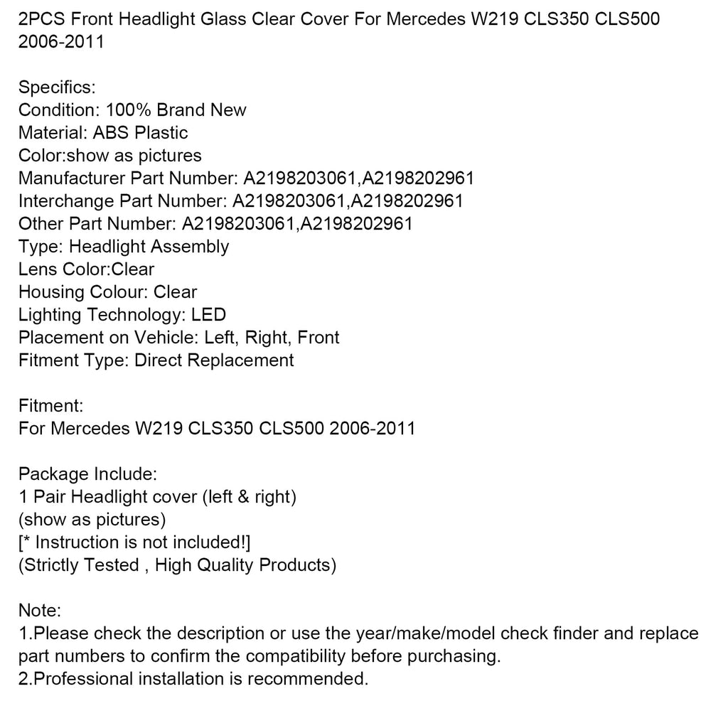 2PCS Front Scheinwerfer Glas Klar Abdeckung Für Mercedes W219 CLS350 CLS500 2006-2011