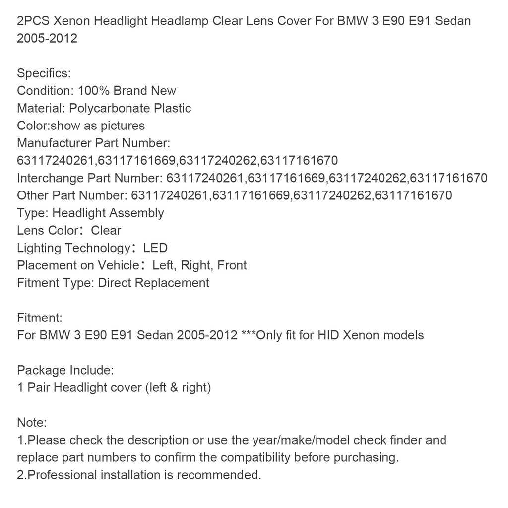 2PCS Xenon Scheinwerfer Scheinwerfer Klare Linse Abdeckung Für BMW 3 E90 E91 Limousine 2005-2012
