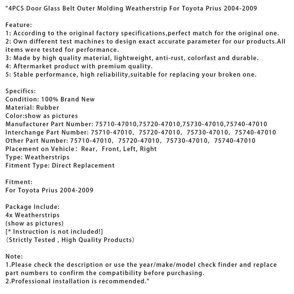 2004–2009 Toyota Prius 4 Stück Tür Glas Gürtel äußere Form Dichtungsstreifen