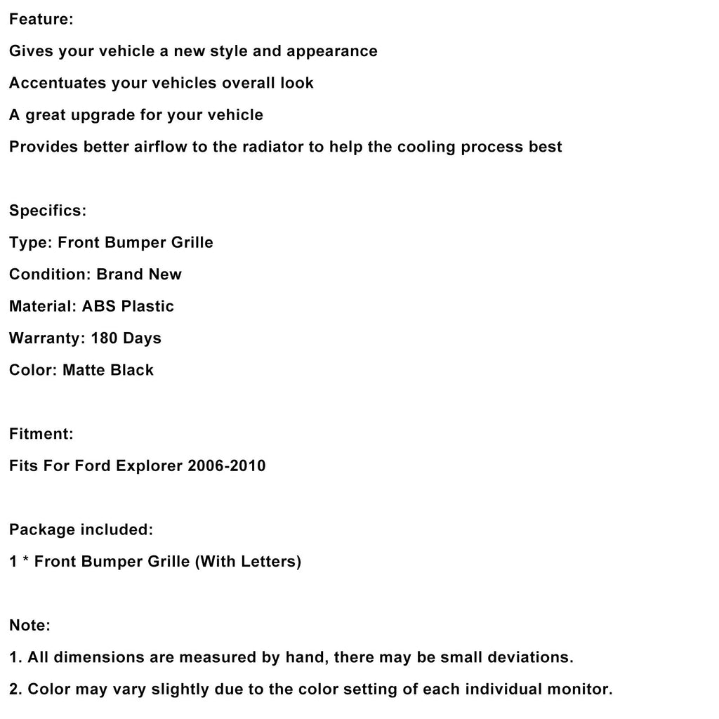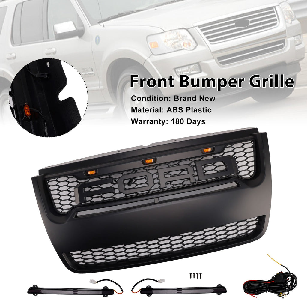 Schwarz Front Upper Bumper Grill Grille Fit Für Ford Explorer 2006-2010 Mit Licht