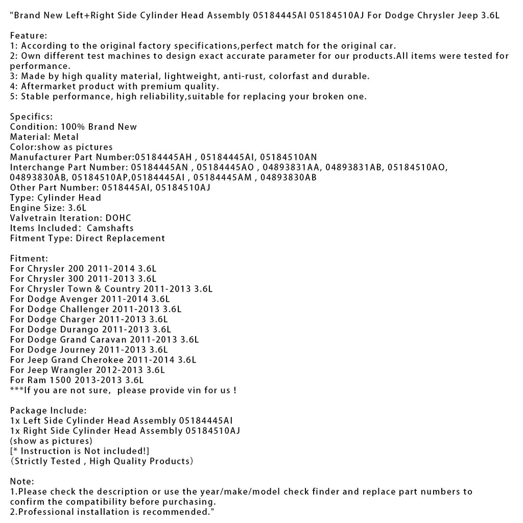 Brandneuer Zylinderkopf (links + rechts) 05184445AI 05184510AJ passend für Dodge, Chrysler und Jeep 3.6L