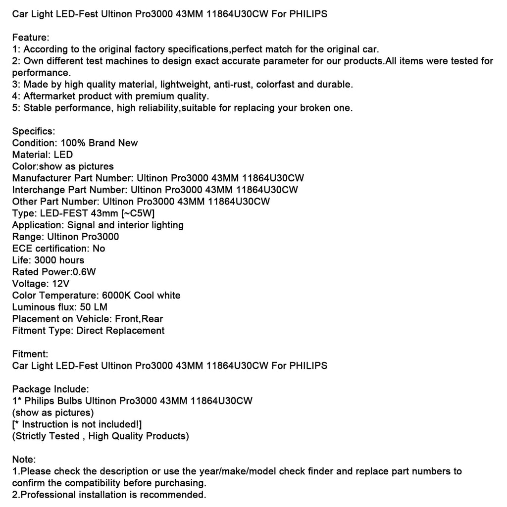 Auto Licht LED-Fest Ultinon Pro3000 43MM 11864U30CW Für PHILIPS