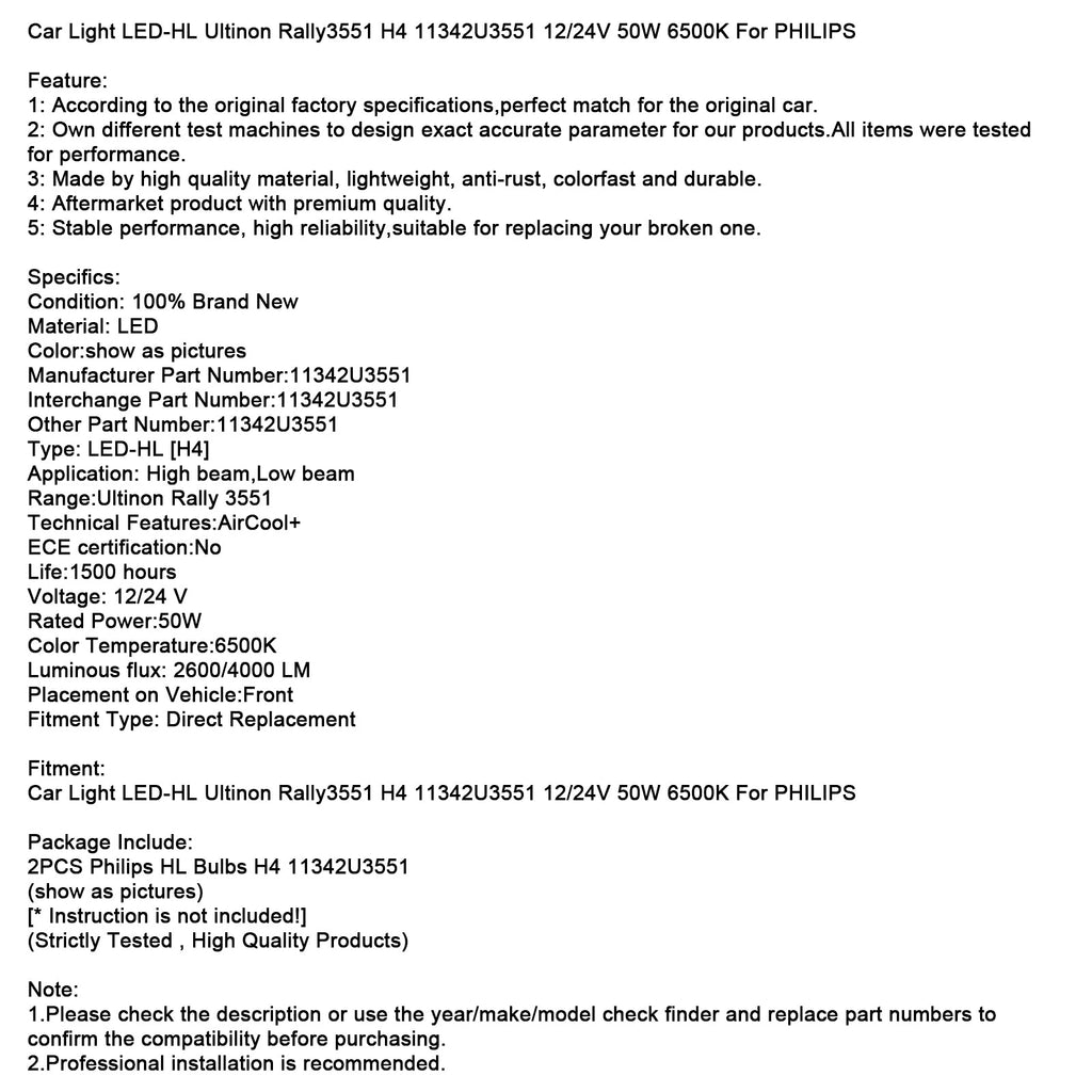 Auto Licht LED-HL Ultinon Rally3551 H4 11342U3551 12/24V 50W 6500K Für PHILIPS