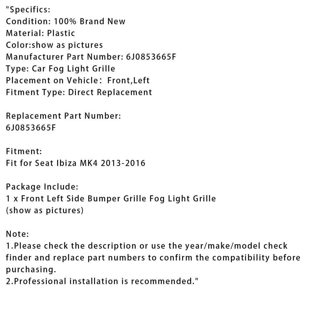 Linke Seite Nebelscheinwerfer Kühlergrill Passend für Seat Ibiza MK4 2013-2016